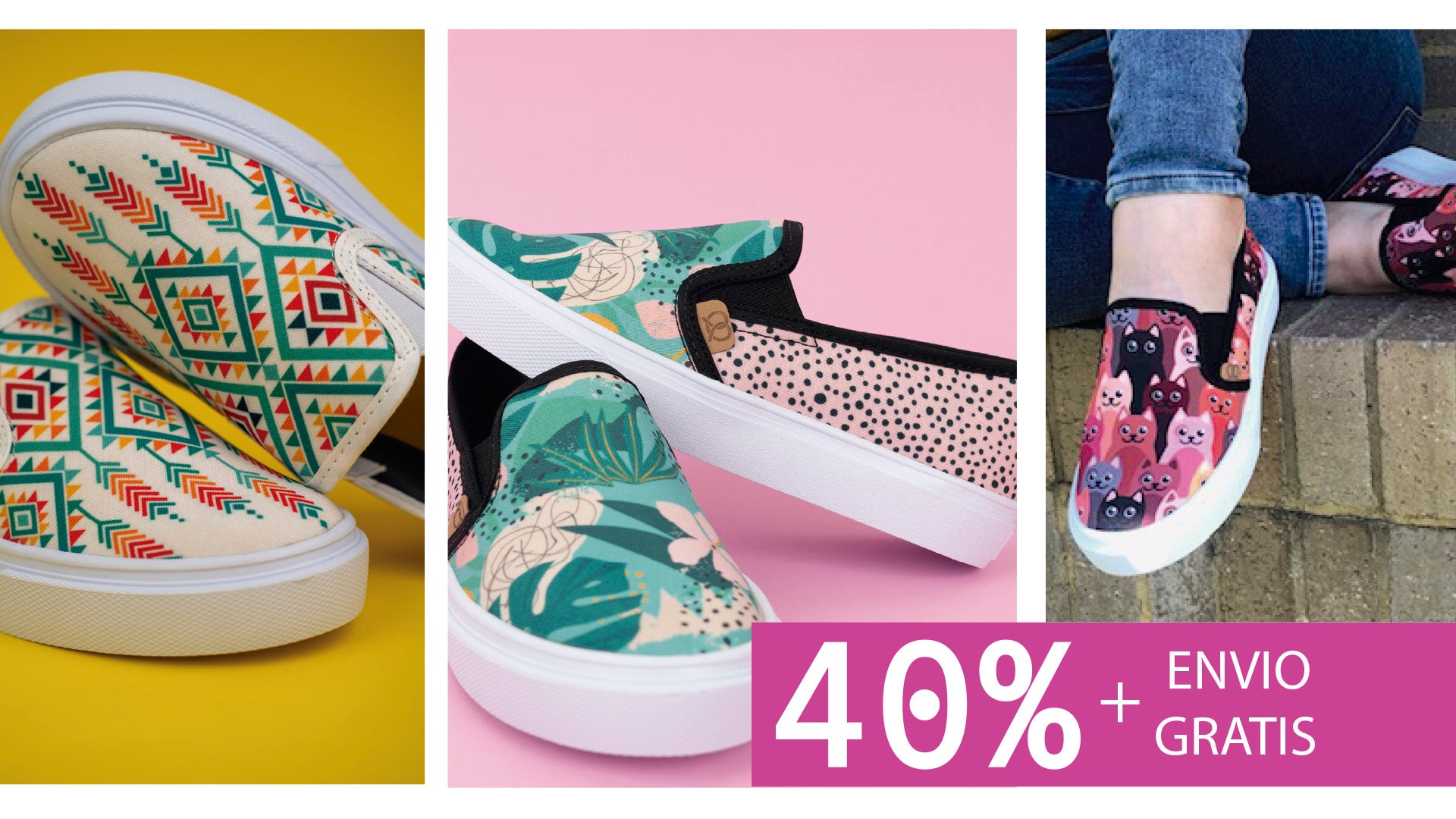 Tenis Slip On para mujer Fermín estampado gatos